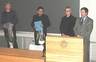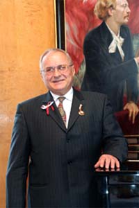 We wtorek rano, ostatniego dnia wizyty, w kościele św. Henryka odbyło się zamknięte spotkanie i Msza święta. Czekaliśmy więc na Papieża na ulicy przed kościołem, znowu w grupie około dwustu osób, w dużej części Polaków. Poza polskimi flagami tym razem zabraliśmy ze sobą historyczny sztandar Zjednoczenia Polskiego w Helsingforsie z napisem: "NIECH ŻYJE POLSKA WOLNA ZJEDNOCZONA". Hasło było stosowne do chwili, jako że tego dnia ogłoszono sensacyjne wyniki polskich wyborow - pełna wygrana Solidarności otwierająca szanse na przełom polityczny w kraju. Ojciec Swięty z pewnością zauważył nasz sztandar, bo podszedł do mnie pytając skąd jesteśmy, a po krotkiej wymianie słów podarował mi różaniec. Okazało się, że ta chwila została sfilmowana i pokazana w wieczornych wiadomościach. Ktoś wykonał również niniejsze zdjęcie, które znalazło się później w wydanym przez Kosciół albumie o wizycie Jana Pawła II w Krajach Skandynawskich. Moja historia z papieżem zakończyła się tak samo jak się zaczęła. W ubiegłym miesiącu, podczas pogrzebu Jana Pawła a potem konklawe znowu znalazłem się za granicą, tym razem w Niemczech, w ojczyźnie nowego Papieża. I znów nie mogłem śledzić tych wydarzeń na bieżąco. Wojciech